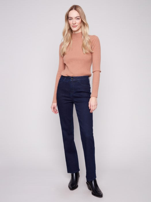 Straight Leg 5 Pocket Stretch Denim Pants With Elastic Inside Waistband
