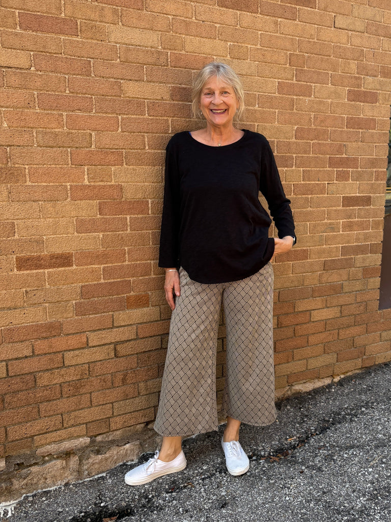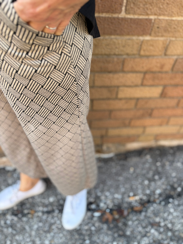A great patterned pant is a must for fall! These are a heavy weight fabric and pair with any black top! An elastic waistband and front slash pockets are made for utility.
