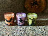 Each vessel measures 3" tall and is made of colored glass and holds 11 oz. wax.