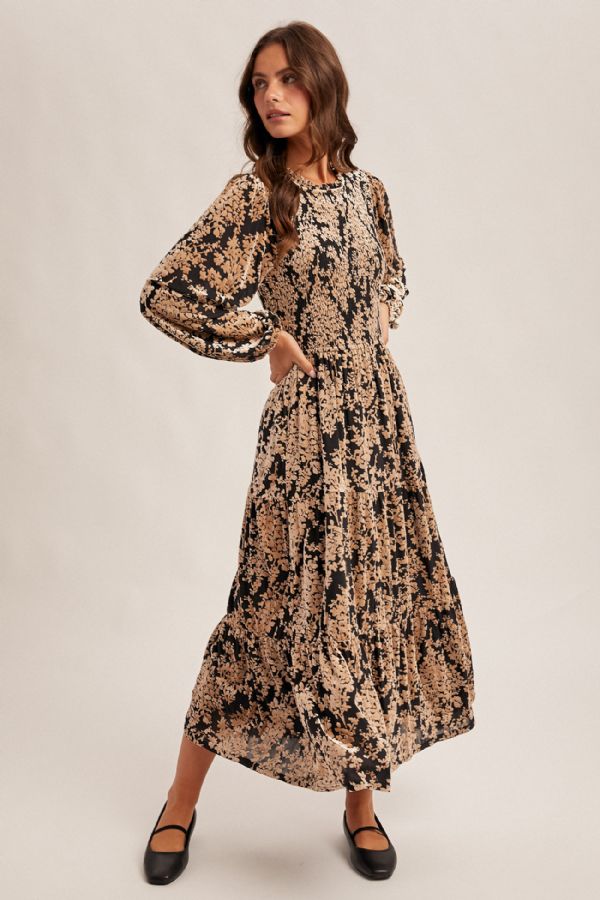 MESH VELVET BURN OUT SMOCKED TOP MIDI DRESS
