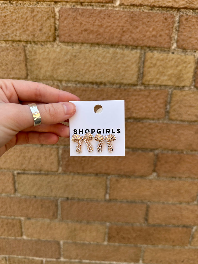 INLAID PEARL BOW STUD EARRINGS
