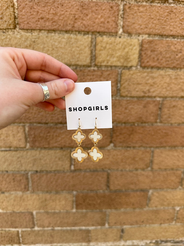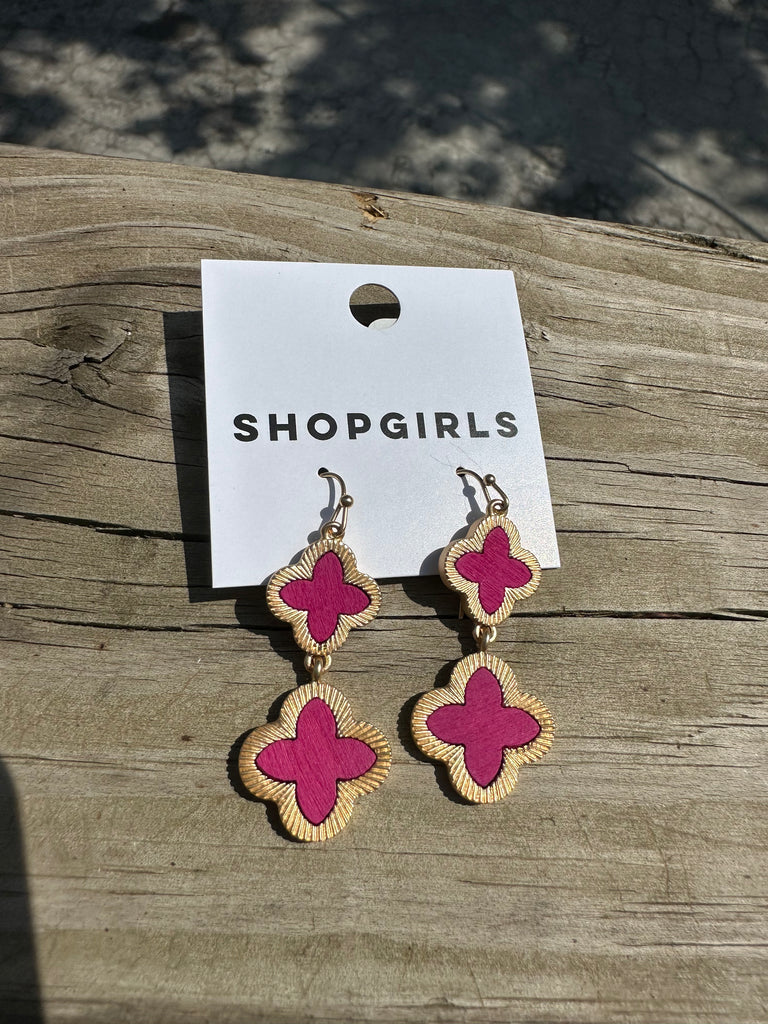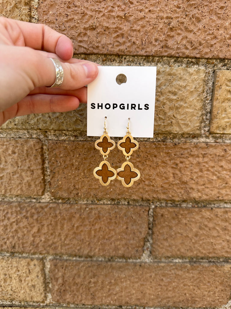 WOOD CLOVER DANGLE EARRINGS