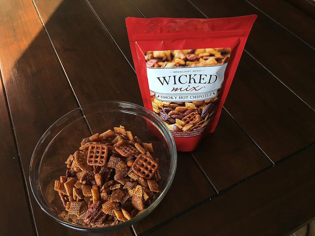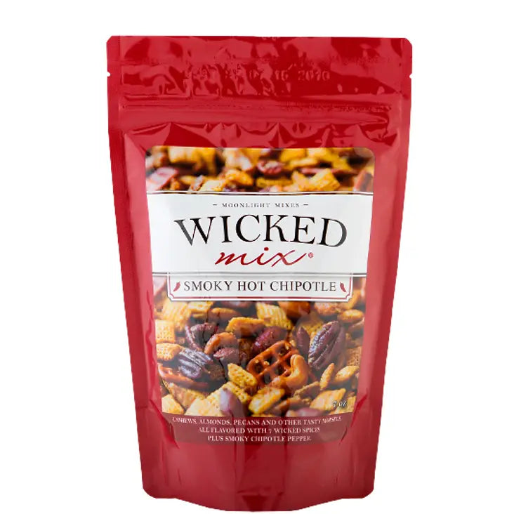 A devilishly delicious medley of cashews, pecan halves, almonds, peanuts, and other crunchy gourmet delights. It's all blended with a unique combination of rich and tangy spices, then baked to sweet, salty, spicy perfection. A spicier version of our snack mix with the addition of smoky chipotle pepper!