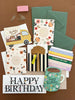 A classic stripe die-cut folded greeting card and coordinating envelope to wish a very Happy Birthday!