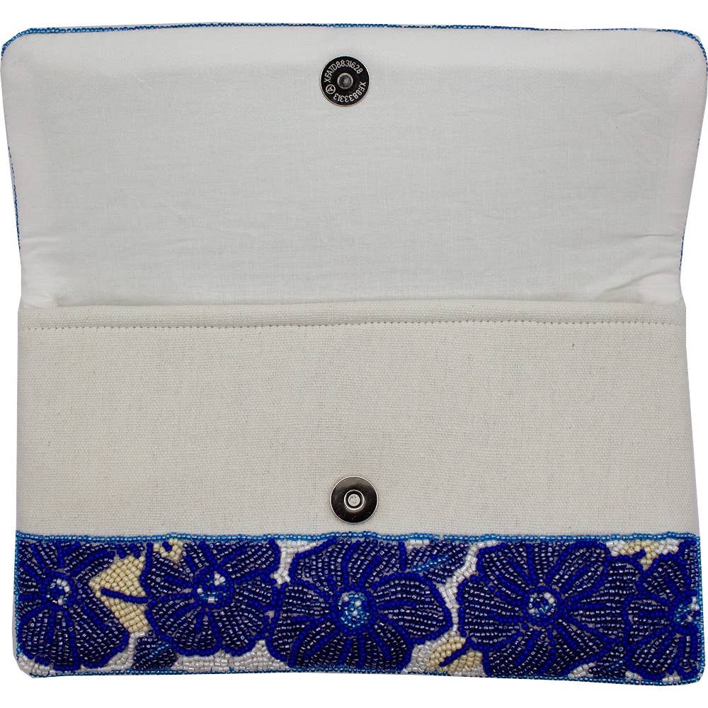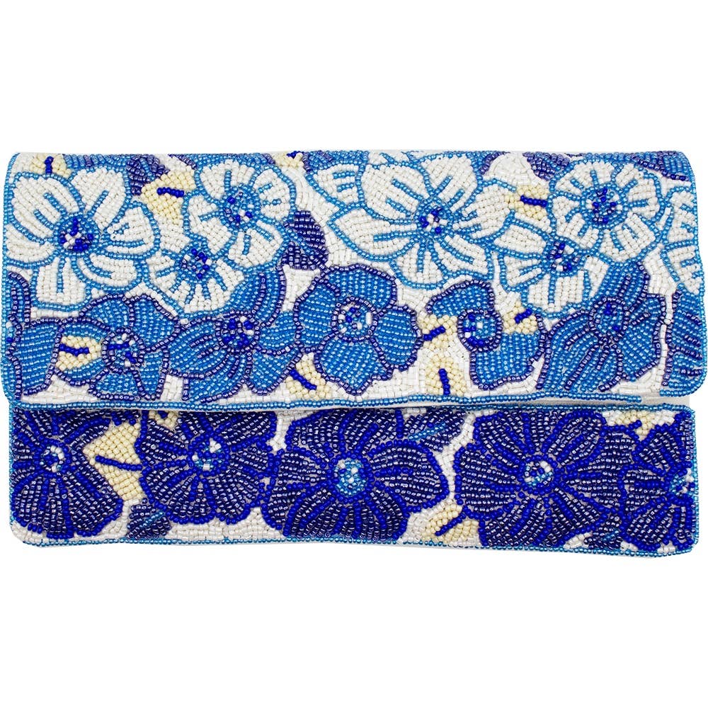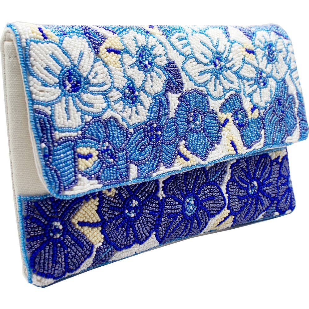 BLUE FLORAL BEADED CLUTCH