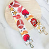 28-50" long adjustable strap with gold buckle. 2" wide.