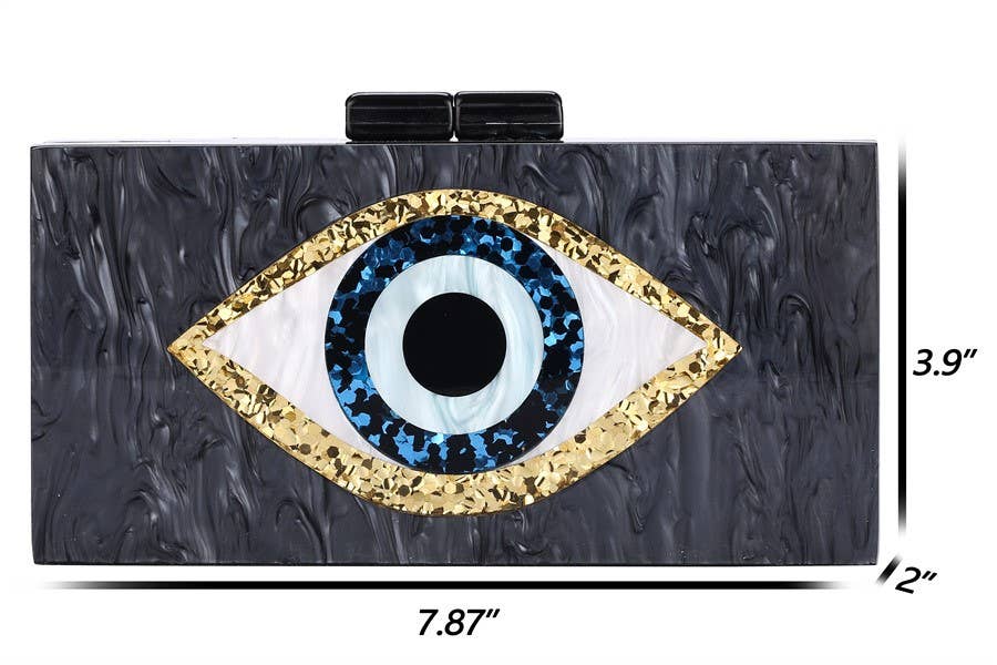 Ladies Square Hard Shape EVIL EYE Theme Clutch Evening Bag