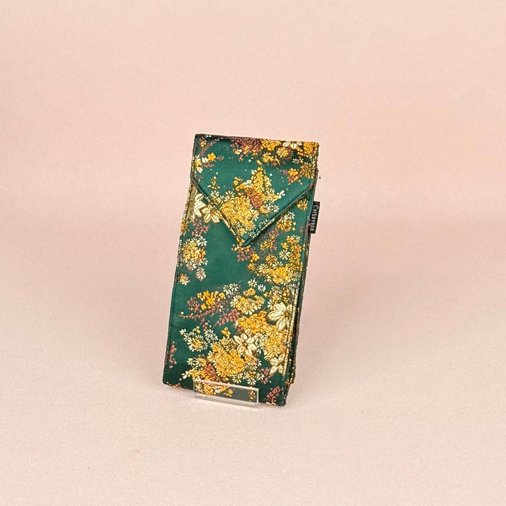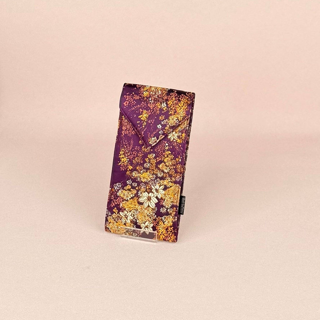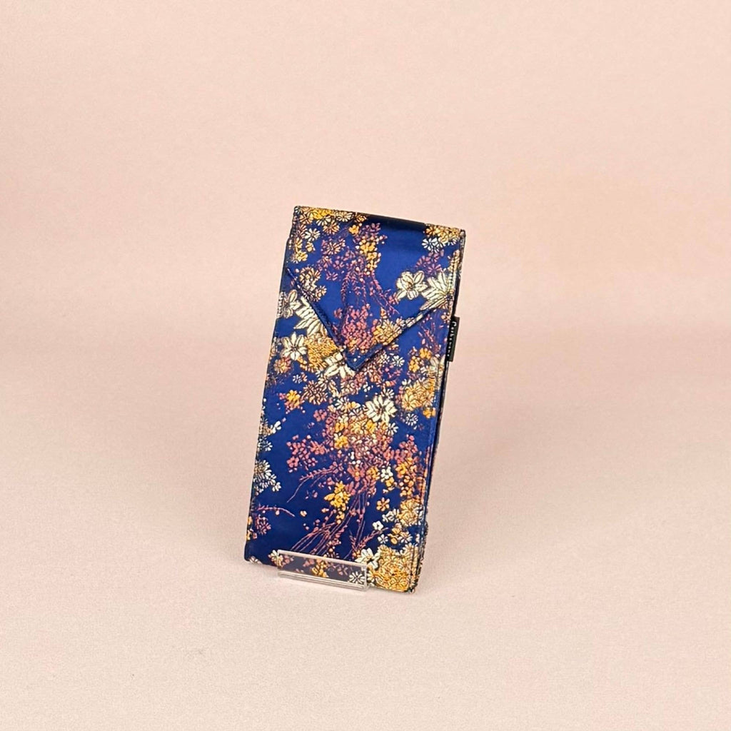 This double eyeglasses holder is designed for holding two pairs of eyeglasses. The cover material is a beautiful brocade fabric! Why be boring, when you can be stylish?!
