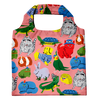 The Cool Critters Art Sack® features a bold, playful illustration by Kristina Micotti, filled with spunky details and personality. Set against a warm pink background, the design showcases a lively cast of animals in stripes, boots, sunglasses, and party hats, including a raccoon enjoying a glass of wine. The colorful, contemporary artwork has a lighthearted sense of humor that invites a closer look without feeling overly busy, making it a standout book tote, everyday carryall, or reusable shopping bag.