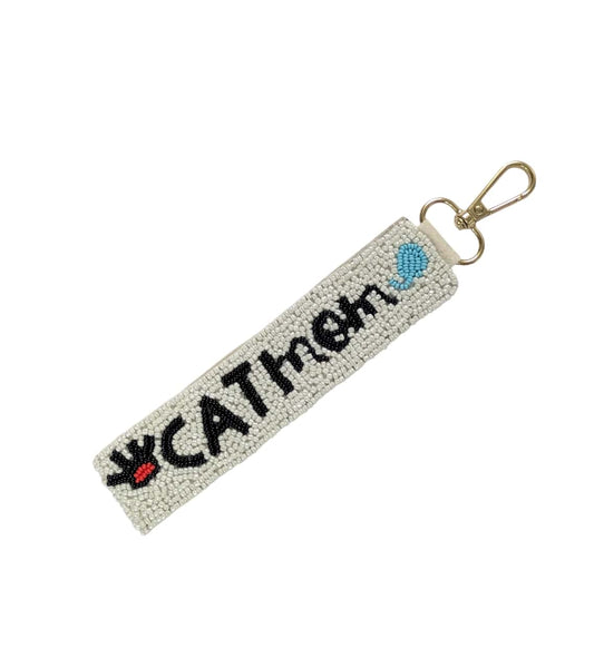 CAT MOM BEADED WRISTLET STRAP KEYCHAIN