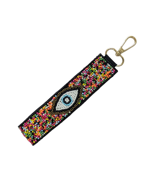 EVIL EYE CONFETTI BEADED WRISTLET STRAP KEYCHAIN