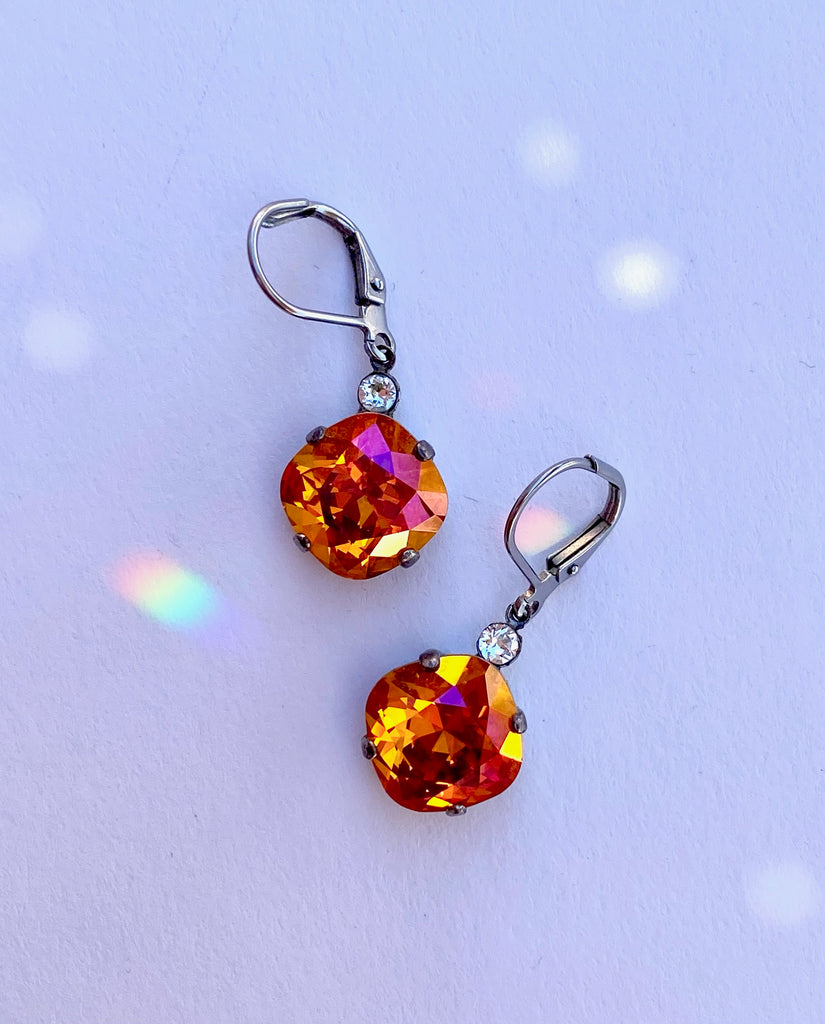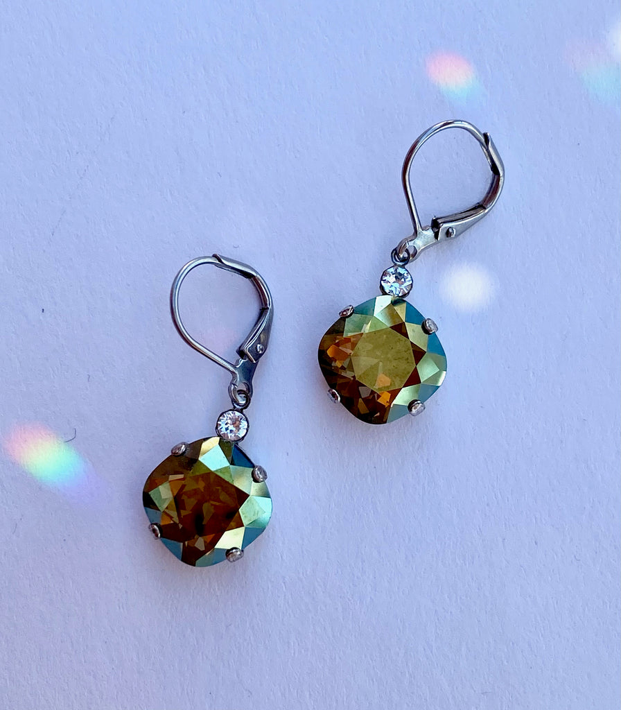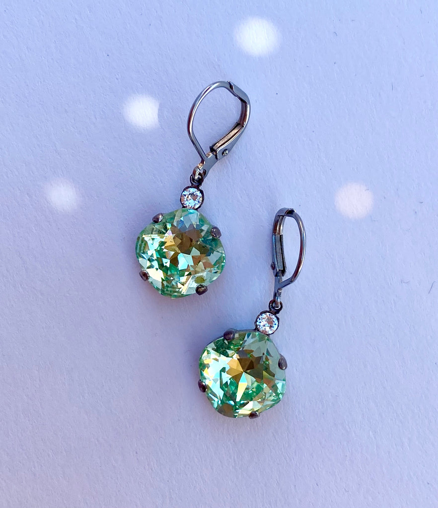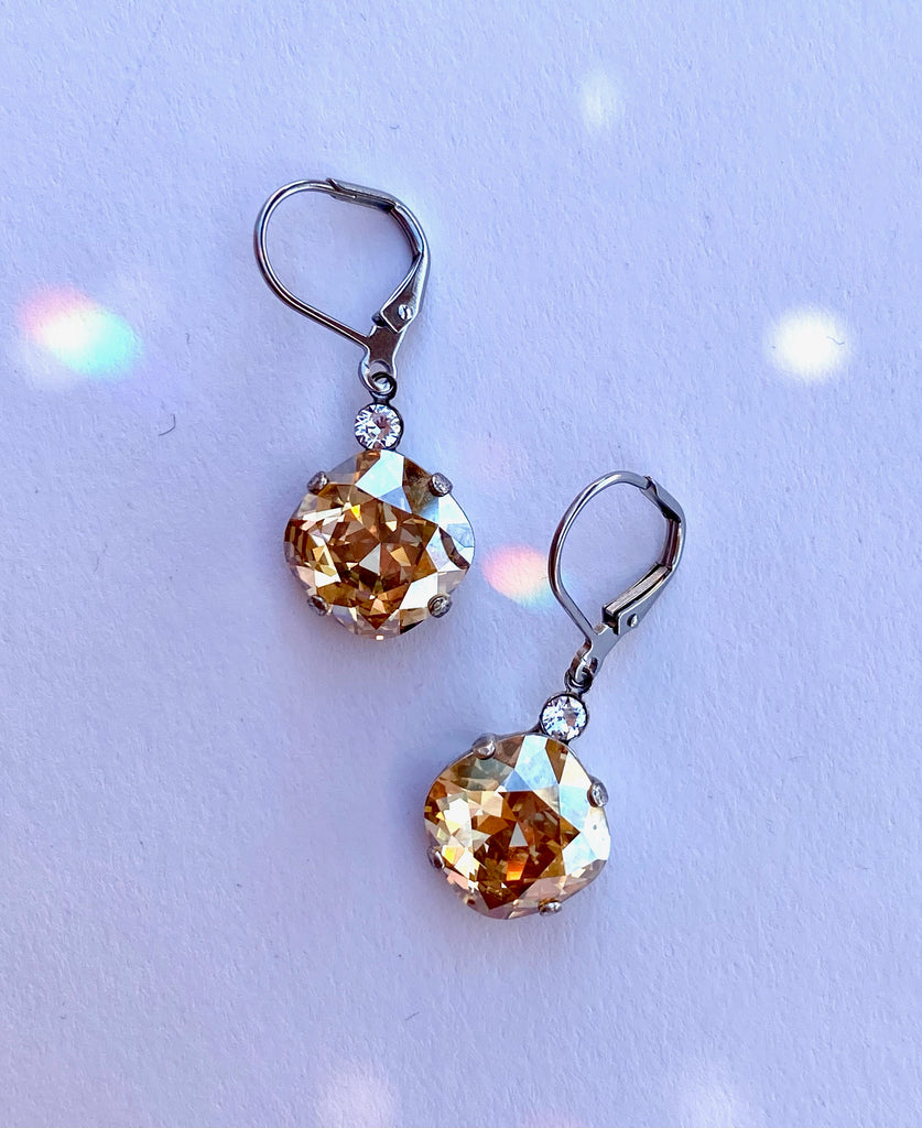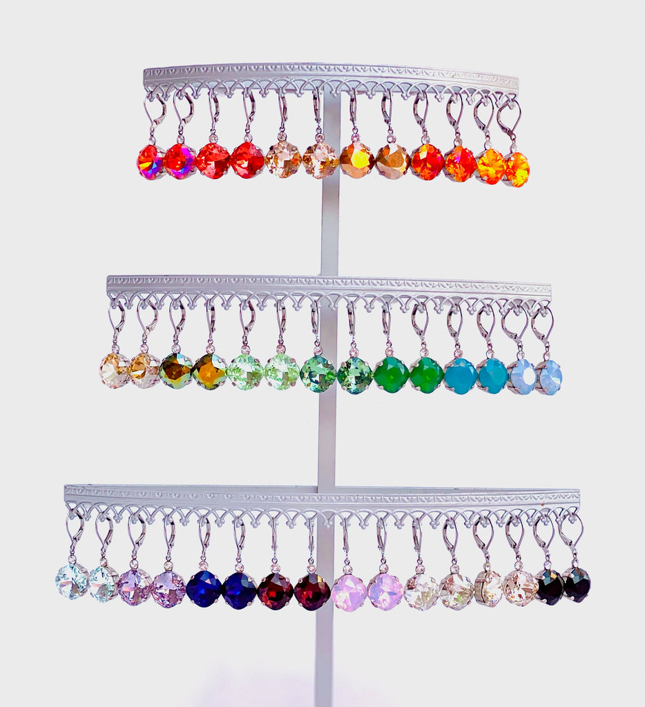 These Swarovski 18mm Fancy Round Stone earrings are a customer favorite! Many colors to choose from. You can't go wrong with any of them. Sparkly and timeless, and sure to be treasured.