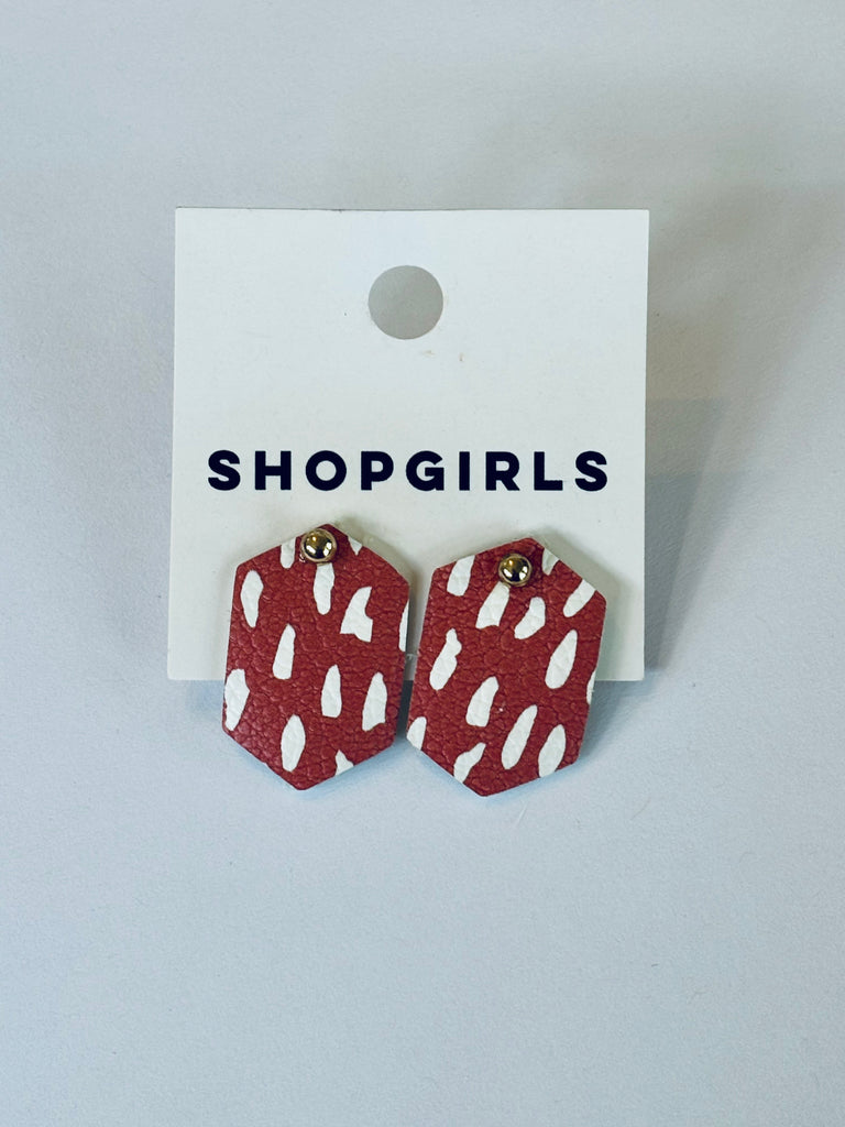 A selection of the cutest little painted leather earrings - handmade by owner Katy's mom, Cheri!