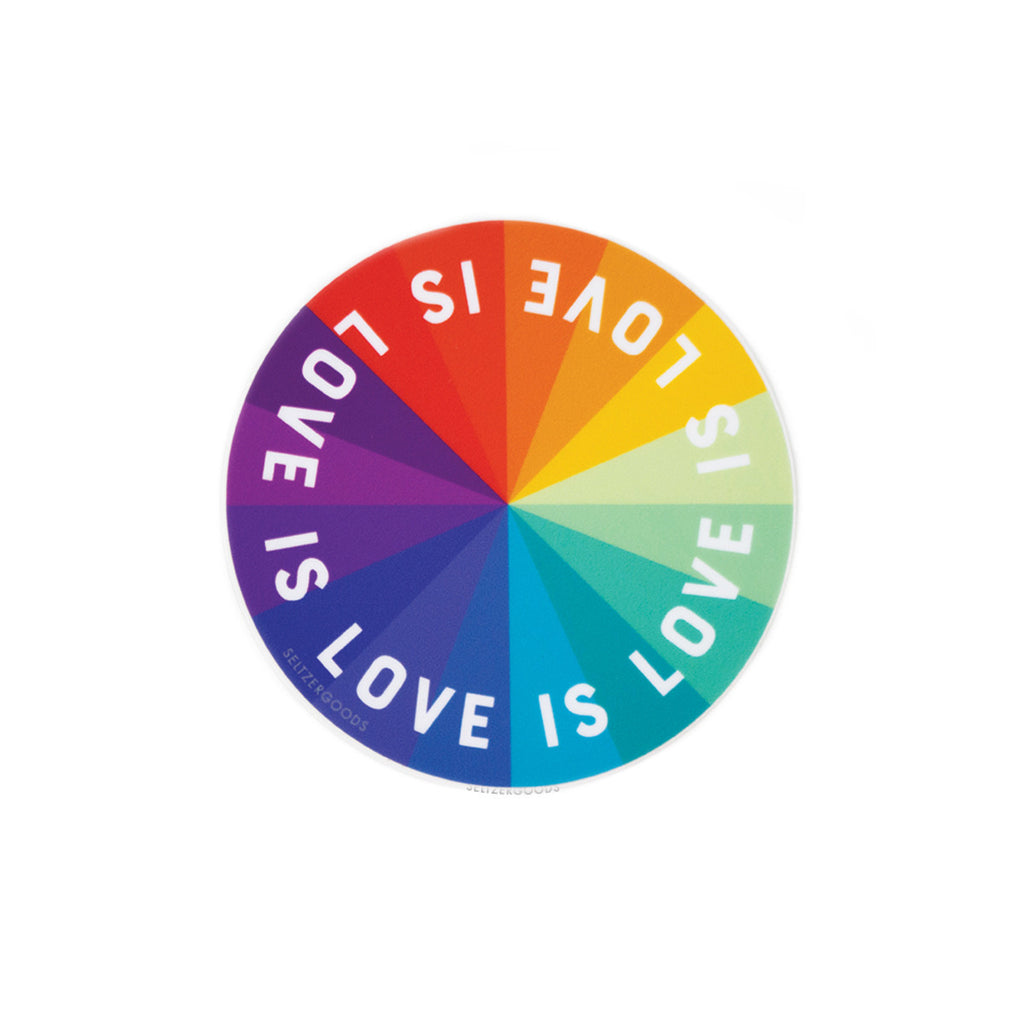 This Love Color Wheel sticker is bright, durable and water resistant. Express what you’re into, what you love and personalize your laptop, notebook or water bottle with an original sticker from Seltzer Goods.