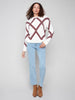 Crew Neck Diamond Intarsia Drop Shoulder Sweater