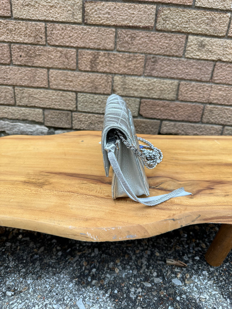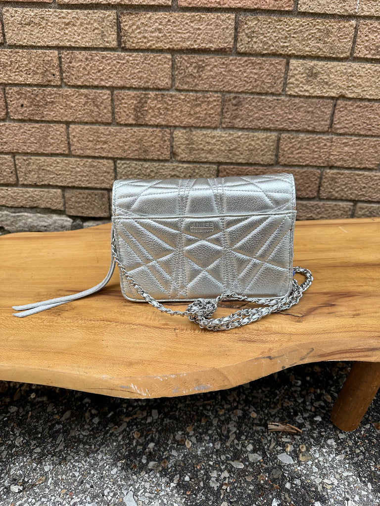 This quilted leather metallic minibag makes the perfect festival, concert, or travel piece!