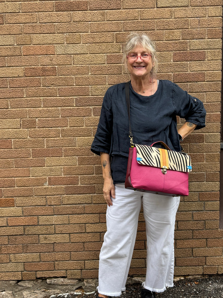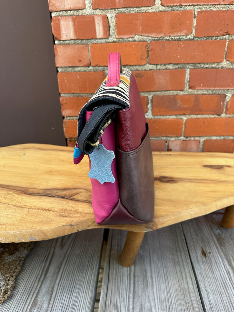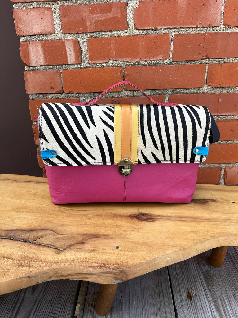 Make a bold statement with this colorful satchel, perfect for carrying all your essentials, including laptops or notebooks. Its spacious main compartment is secured with two magnetic closures, ensuring your belongings stay safe while you’re on the move.