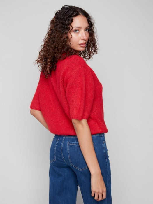 Hairy Knit Elbow Sleeve Balloon Shape Sweater
