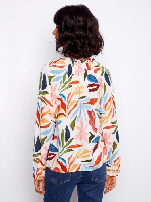 Printed Raglan Long Sleeve Popover Blouse