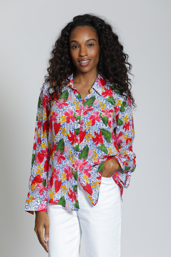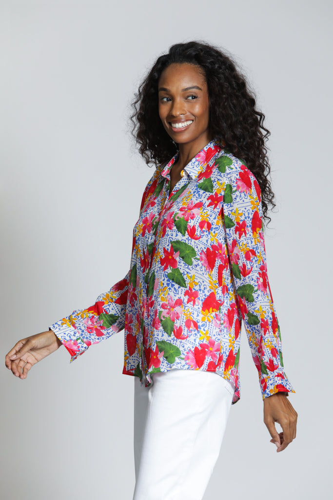 A long sleeve button-up is a style essential, and this easy piece has captured our attention thanks to the print details and effortless look. We love the beautiful prints flowing on the fabric, rolled up tab sleeves, flattering silhouette and every other detail we need to snap up this easy blouse and wear it on repeat in every season. Slip on this button-up shirt and fall in love with our flattering silhouette, relaxed fit and breathtaking print designs. Nothing beats a basic with a splash of colors.