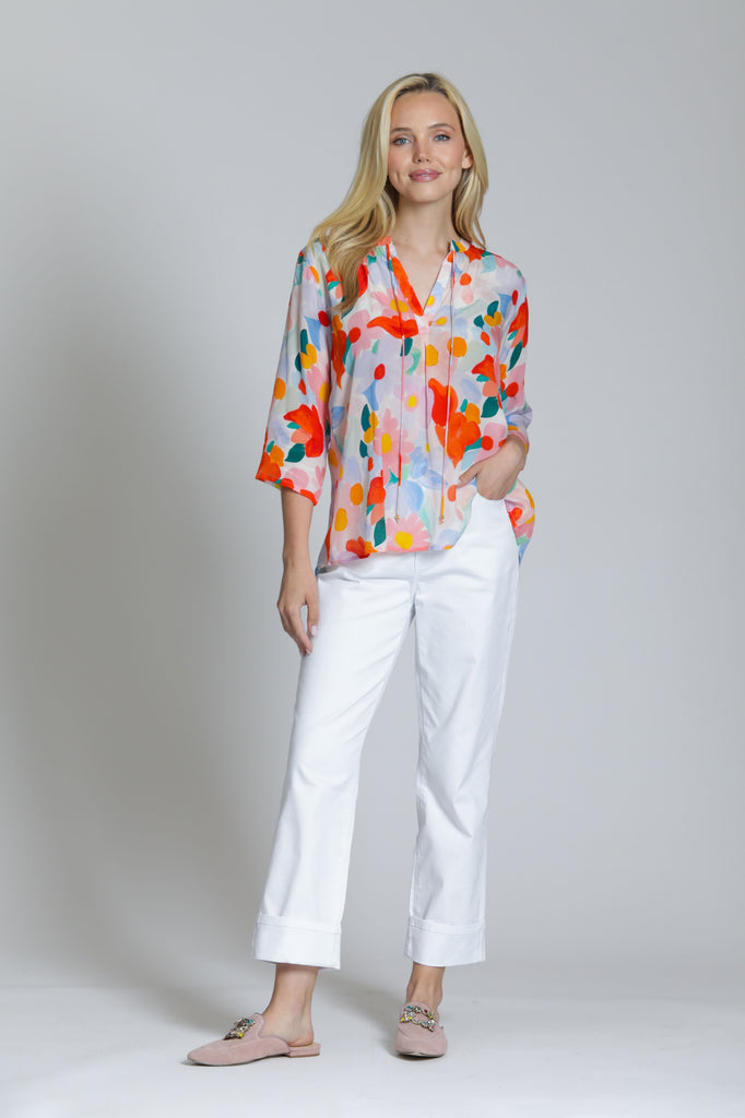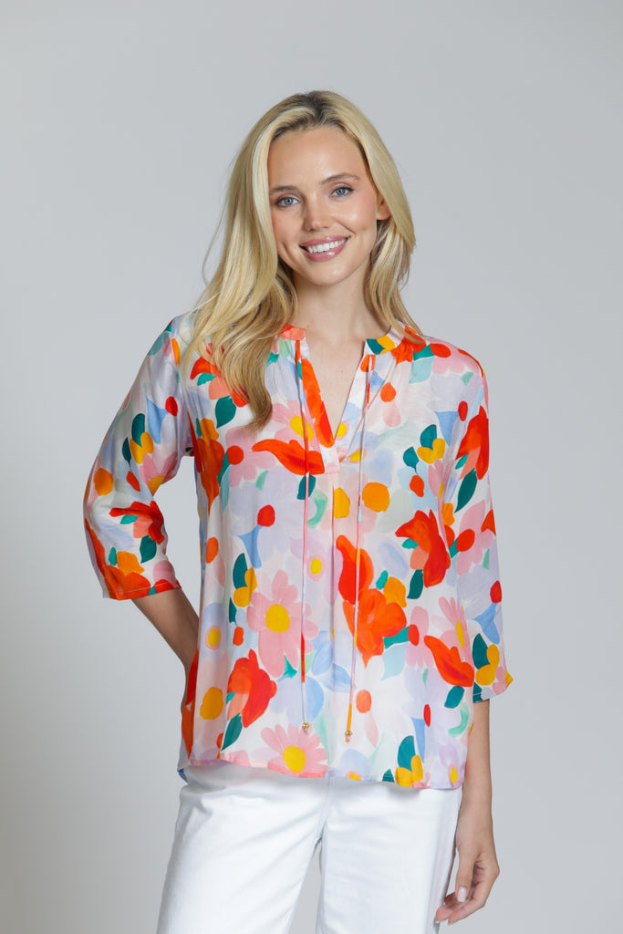 Add some style statement to your everyday look with this V-neck botanical print blouse. This printed top with playful tassel details at the neckline is super lightweight and beautifully draped, the soft fabric keeps you comfortable and sophisticated every time.