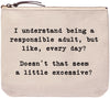 Our new everyday bags are large and luxurious! They're made of 100% durable cotton canvas, with a gold zipper and leather zipper pull. They have a gusseted bottom, and at 9" wide by 7" tall, they're significantly bigger than our zipper pouches, with a high-end feel.