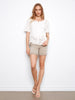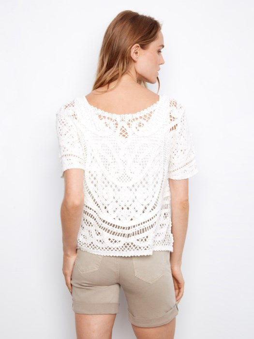 Front Back Reversible Short Sleeve Crochet Sweater With Placket & Buttons