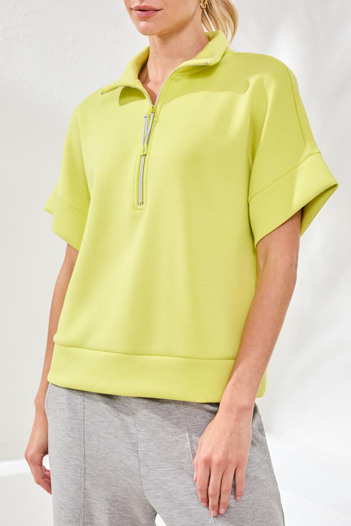 A sporty mock neck top with zip detail, crafted from our Techno Lux scuba for a perfect balance of support, movement, and style. Designed for busy days, this essential top is ideal for layering or wearing on its own.