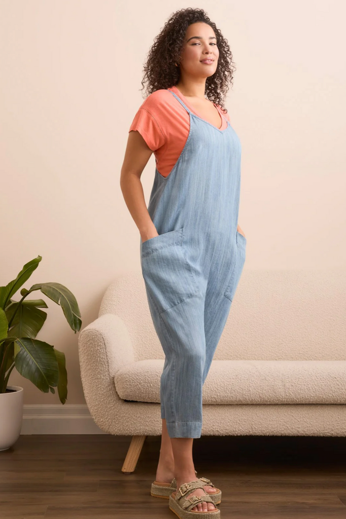 Opt for a laid-back look with this relaxed jumpsuit, crafted from soft, textured Tencel fabric for ultimate comfort. The sleeveless design keeps things cool, while the wide ankle-length legs offer the perfect amount of coverage. Large patch pockets add both practicality and style, keeping your essentials close as you move through your day.