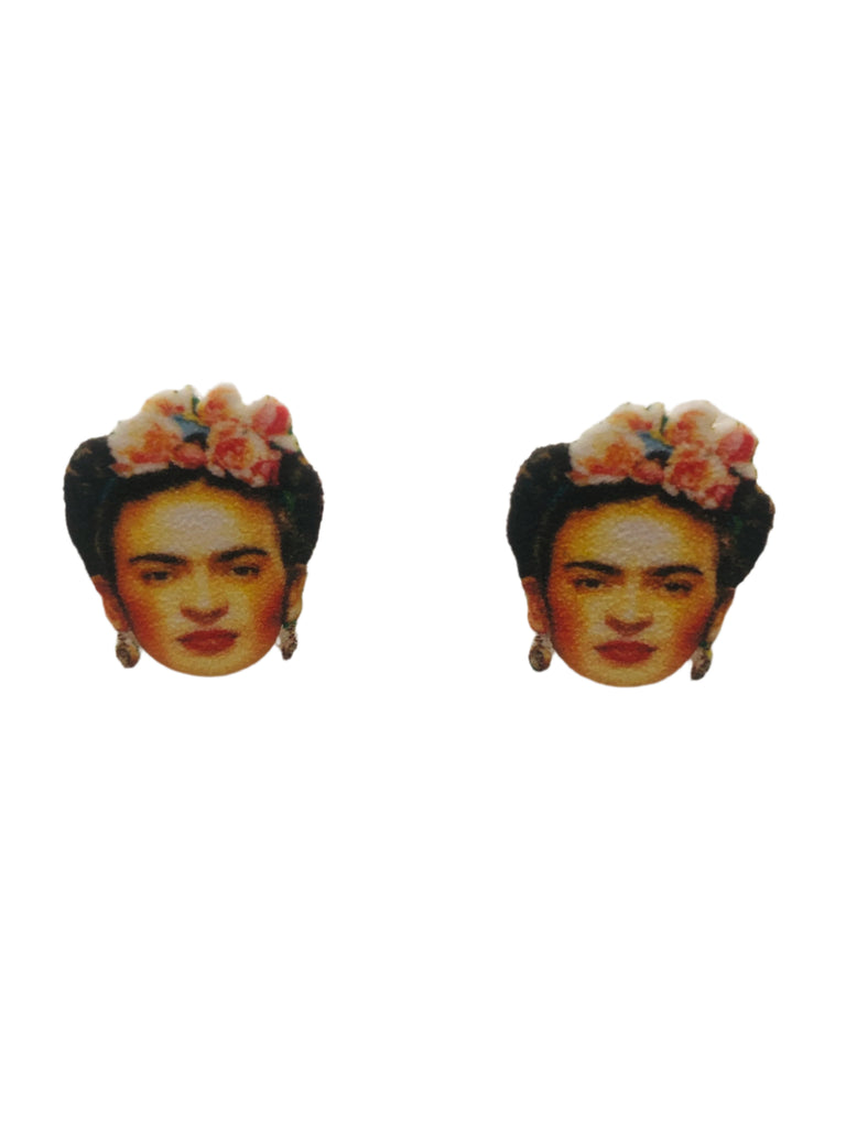 These Frida studs are perfect for the Frida gal! Frida's image is photo screened and shrunk down by a heat transfer method similar to "shrinky dinks". These studs are lightweight and measure just under 0.5" inch.